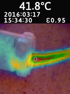 On removing the plug from the socket the thermal imprint transferred from the plug was apparent, identifying the plug as the source of the heat.
